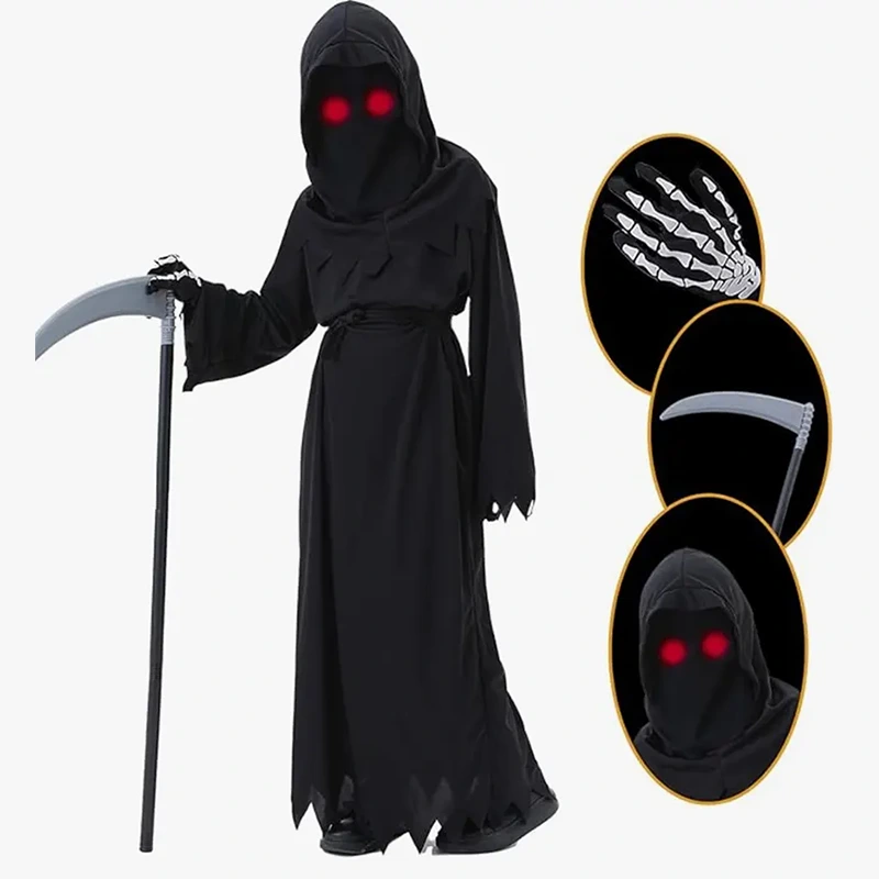 Das Sensenkostüm ist ideal für Halloween, Kostümpartys, Schulspiele und vieles mehr. Lassen Sie Ihr Kind seine Fantasie annehmen, während es die Rolle des Sensenmanns spielt, was es zu einer Lieblingswahl für Dress-up-Events macht. Das Sensenkostüm überrascht Ihr Kind mit diesem aufregenden Tiefpunktkostüm als Halloween-Geschenk. Es ist perfekt für Kinder, die gruselige Charaktere lieben und das Rollenspiel genießen. Beobachten Sie, wie sie bei jedem Event im Mittelpunkt der Aufmerksamkeit werden!